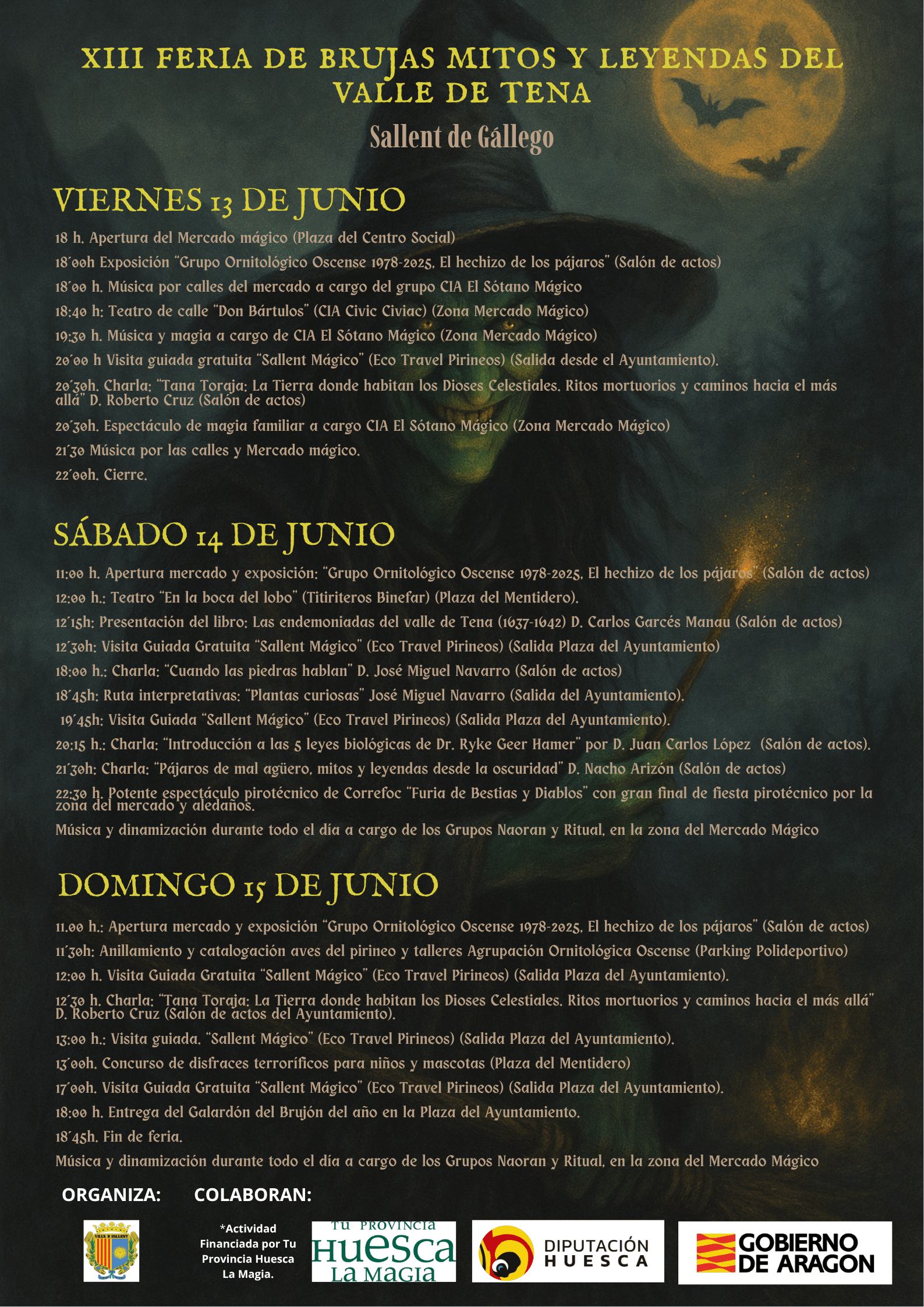 Durante todo el fin de semana, la localidad se transporta a finales de la Edad Media, donde los pueblos del Valle de Tena fueron el escenario de misteriosos sucesos de magia negra y brujería. Un mercado mágico se instalará a lo largo del municipio, acompañado de actividades infantiles, teatro en la calle, talleres, charlas y conferencias.