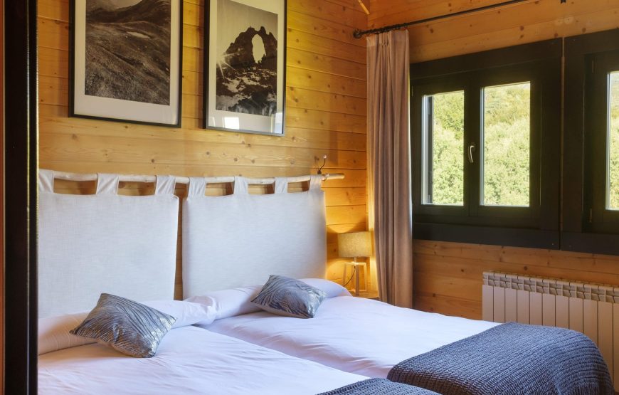 Se trata de un Lodge de montaña, compuesto por 8 cabañas de madera y un edificio principal. Las cabañas están totalmente equipadas con todo tipo de detalles para disfrutar del entorno con el máximo confort. Tenemos cabañas con capacidad para 2, 4, 6 y 8 personas