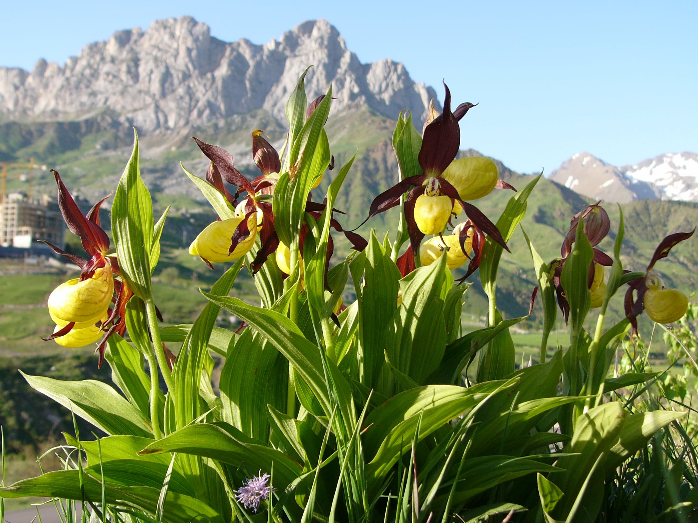 El Zapatito de dama «Cypripedium calceolus» es una hermosa y original orquídea de ambientes alpinos localizada principalmente en la cabecera del valle de Tena, en una ladera de orientación norte de hayedo y pasto tradicional.